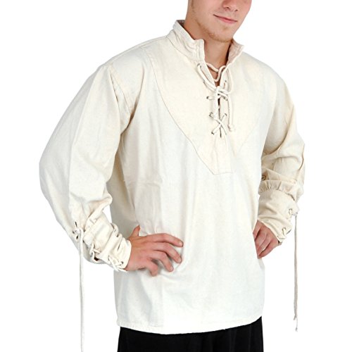 IL modello da me realizzato ispirato ad una delle prime camicie medievali, realizzata con cotone bianco, nel Medioevo veniva usato il lino). Camicia semplice con lacci frontali e bottoni alle maniche. Bares Casual Summer Renaissance Costume medievale-Camicia da pirata,. Bero - Camicia medievale - Indumento maschile - Eventi LARP - Con lacci .